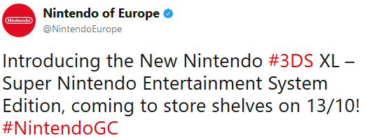 New 3DS XL Super Nintendo Entertainment System Edition é revelado !! Postado por Sussu World em agosto 22, 2017 Gerar link Facebook X Pinterest E-mail Outros aplicativos