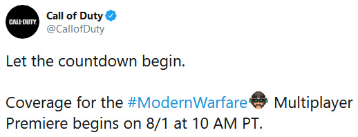 Call of Duty: Modern Warfare - Multiplayer será revelado dia 1 de Agosto !! Postado por Sussu World em julho 30, 2019 Gerar link Facebook X Pinterest E-mail Outros aplicativos