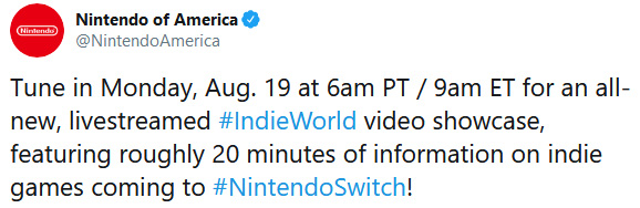 Nintendo Indie World Video Showcase confirmado para o dia 19 de Agosto !! Postado por Sussu World em agosto 16, 2019 Gerar link Facebook X Pinterest E-mail Outros aplicativos